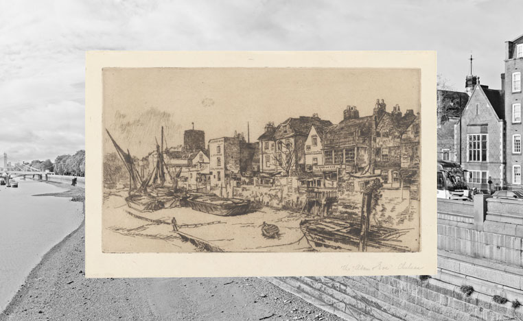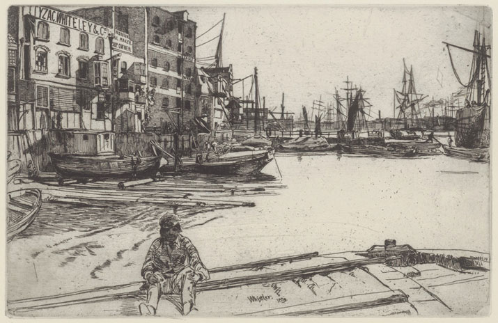 Whistler’s life was marked by numerous travels, which constantly offered him new motifs and were captured directly on site in graphic works. After moving from the East Coast of the USA to Paris at the age of 21, he settled in London in 1859. Through his art, he explored the city on the Thames and created numerous prints until the end of the 1890s, which depict then-unusual views of the river, its banks and bridges, ships and harbor scenes, as well as people in their everyday lives.